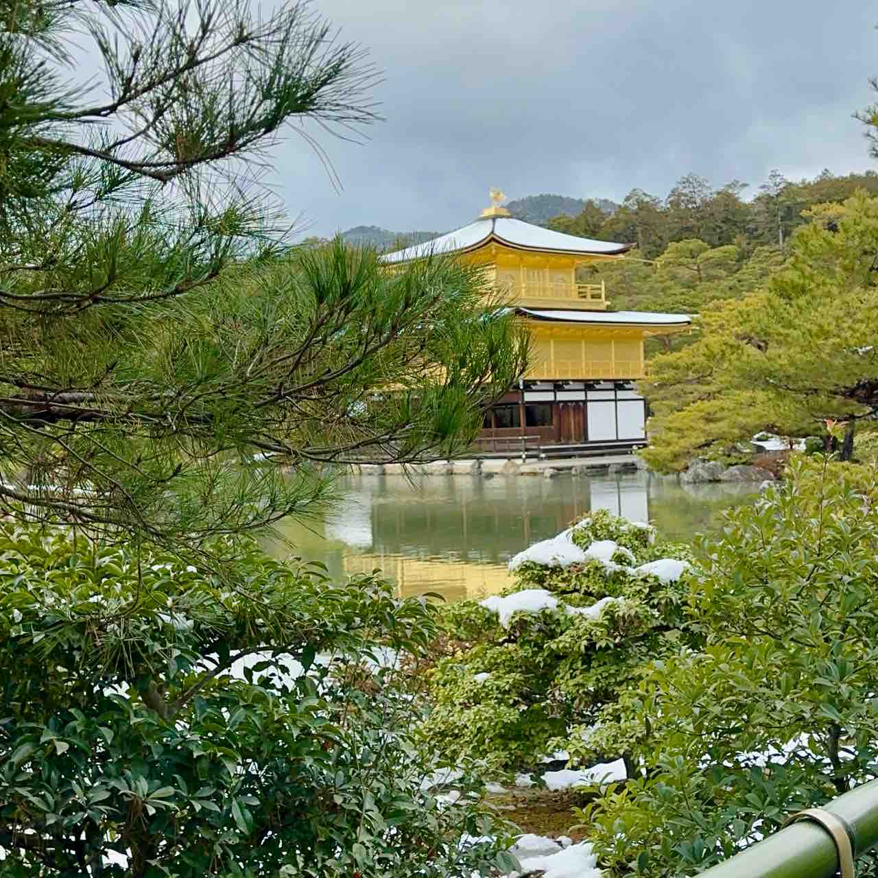 ↑雪の金閣寺は、普段黒い屋根が雪化粧で白くなり、とても綺麗です!